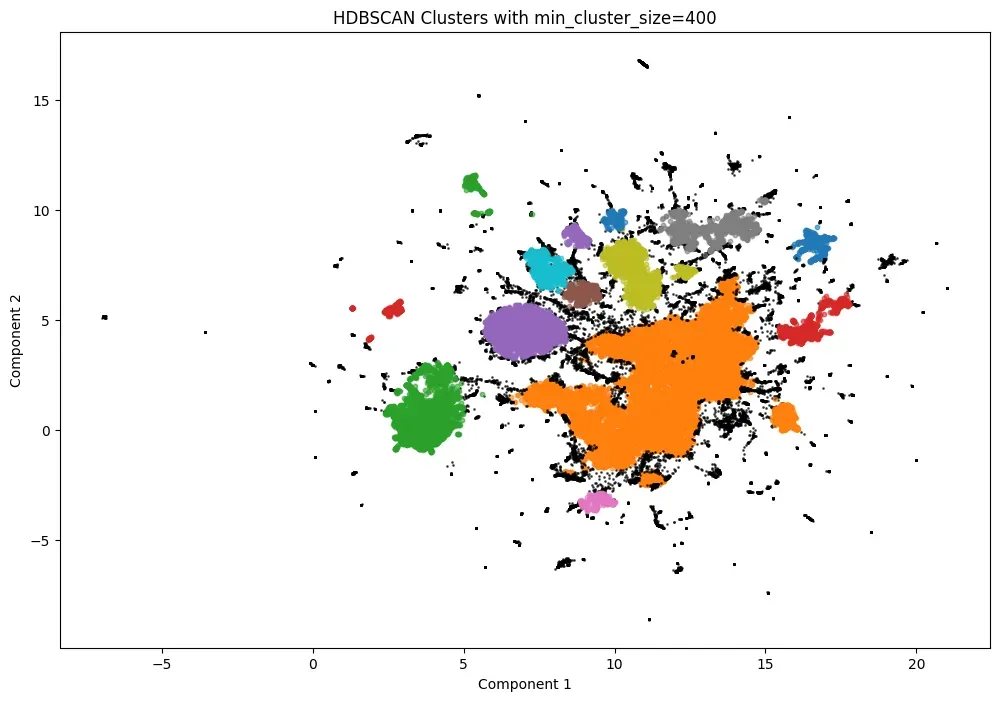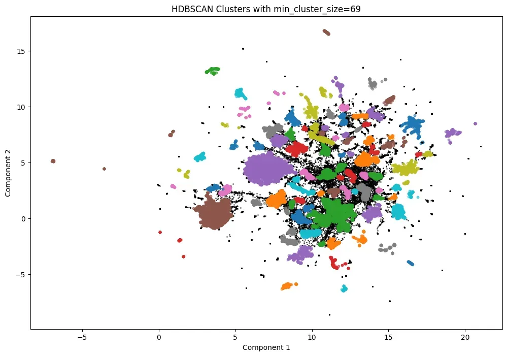 - HDBSCAN achieved more coherent clusters compared to DBSCAN or k-means clustering mechanisms