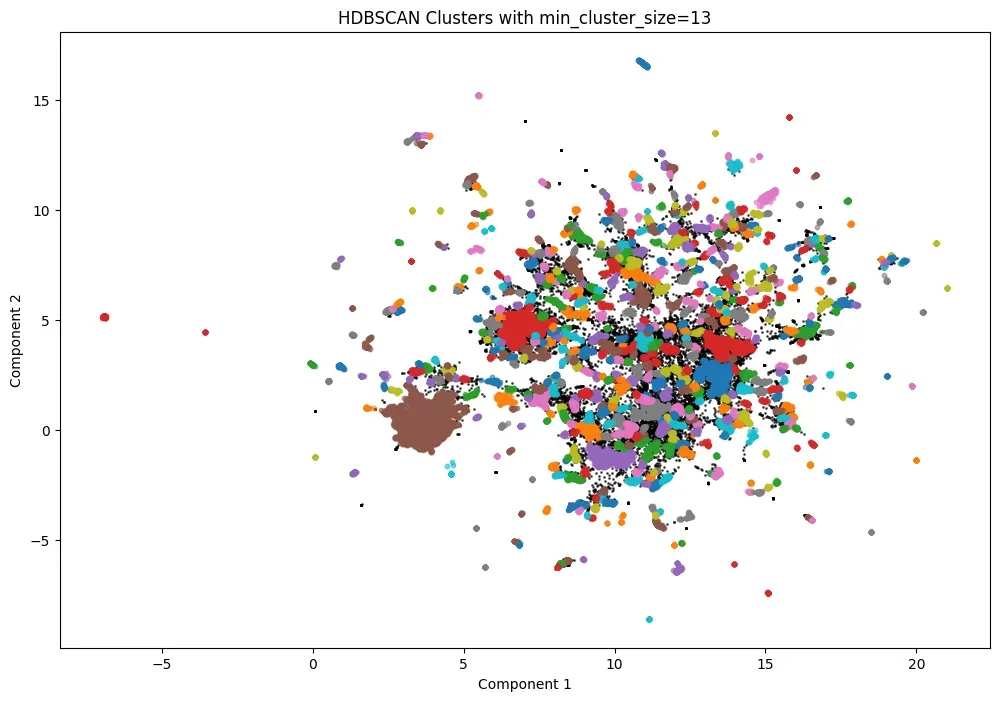 - Applying HDBSCAN at multiple granularity levels to identify topic clusters