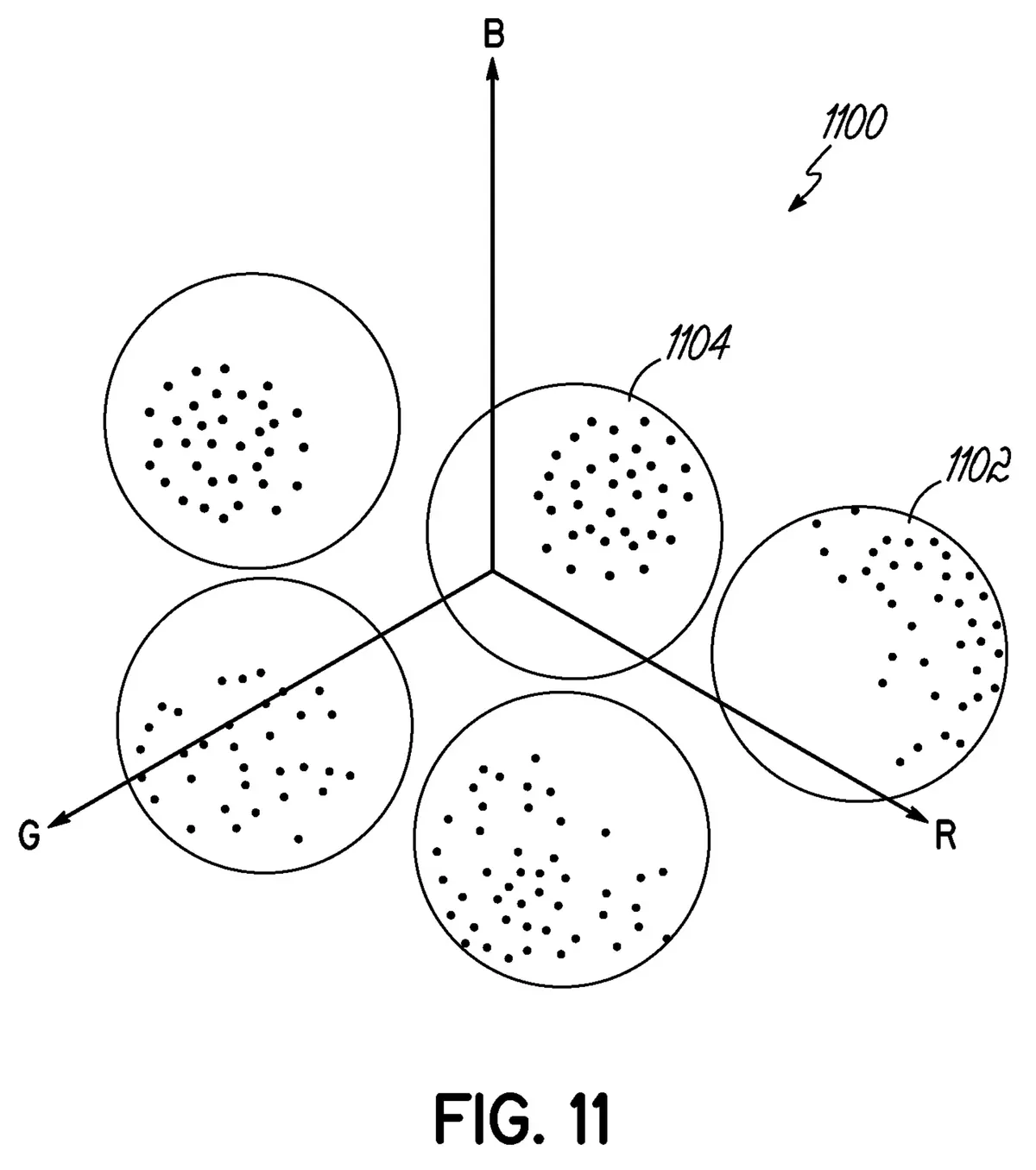 Streaming k-means clustering adapts to observed color space (from US Patent 10,116,394 B2)