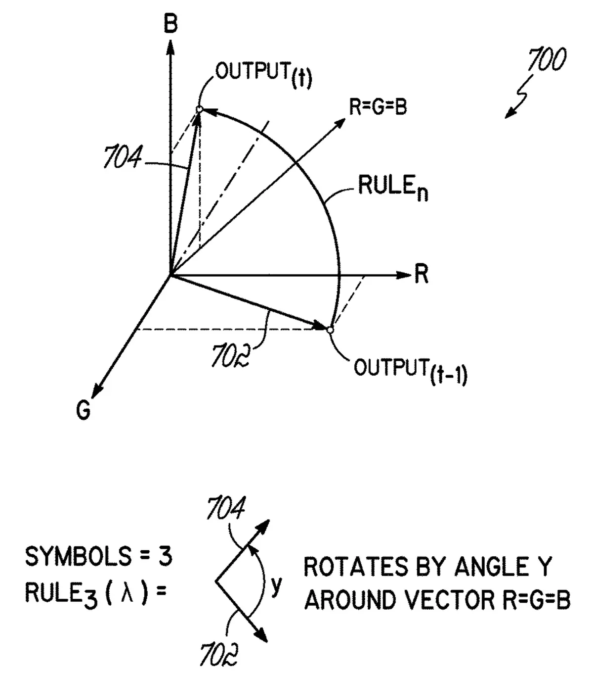 Symbols encoded as modulation deltas between color clusters (from US Patent 10,116,394 B2)